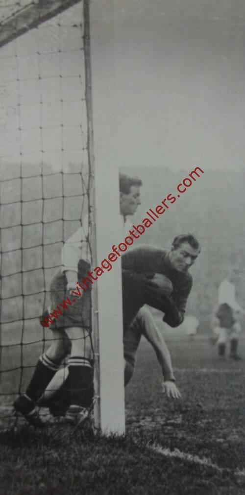 He was the Bolton Wanderers goalkeeper at the first ever FA Cup Final to be played at Wembley Stadium in 1923 when they beat West Ham United 2-0, the so called “White Horse” Cup Final because of the presence of a mounted white police horse at the helm of the crowd control,. He won further FA Cup winners medals with Bolton in their wins over Manchester City in 1926 and and Portsmouth in 1929 and earned three caps for England. Pym made his England debut a 2-1 win over Wales at The Vetch Field, Swansea on 28th February 1925. The following month he played in a 2-0 defeat to Scotland at Hampden Park. On 1st March 1926, again playing Wales, he won his third and final cap in a 3-1 defeat at Selhurst Park.