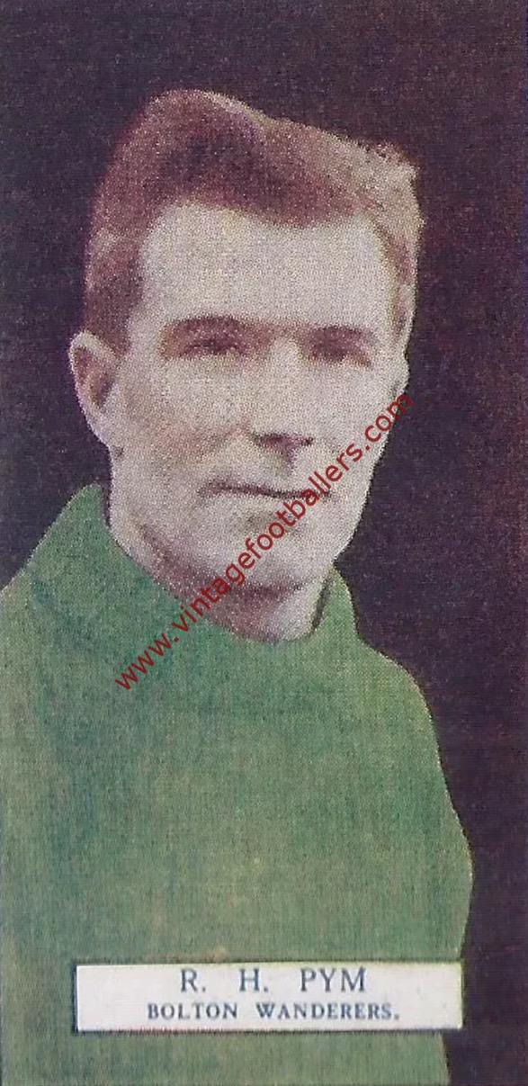 Pym played his last game for Bolton in September 1930 in a heavy defeat at Liverpool and left Bolton after 336 appearances for the club to play for another year with non-league Yeovil & Petters United in May 1931, playing for them until 1932. In January 1933 he became Topsham’s coach, occasionally turning out for them. He later had a spell as Exeter City’s assistant trainer from August 1937 and after the Second World War scouted for Bolton Wanderers.