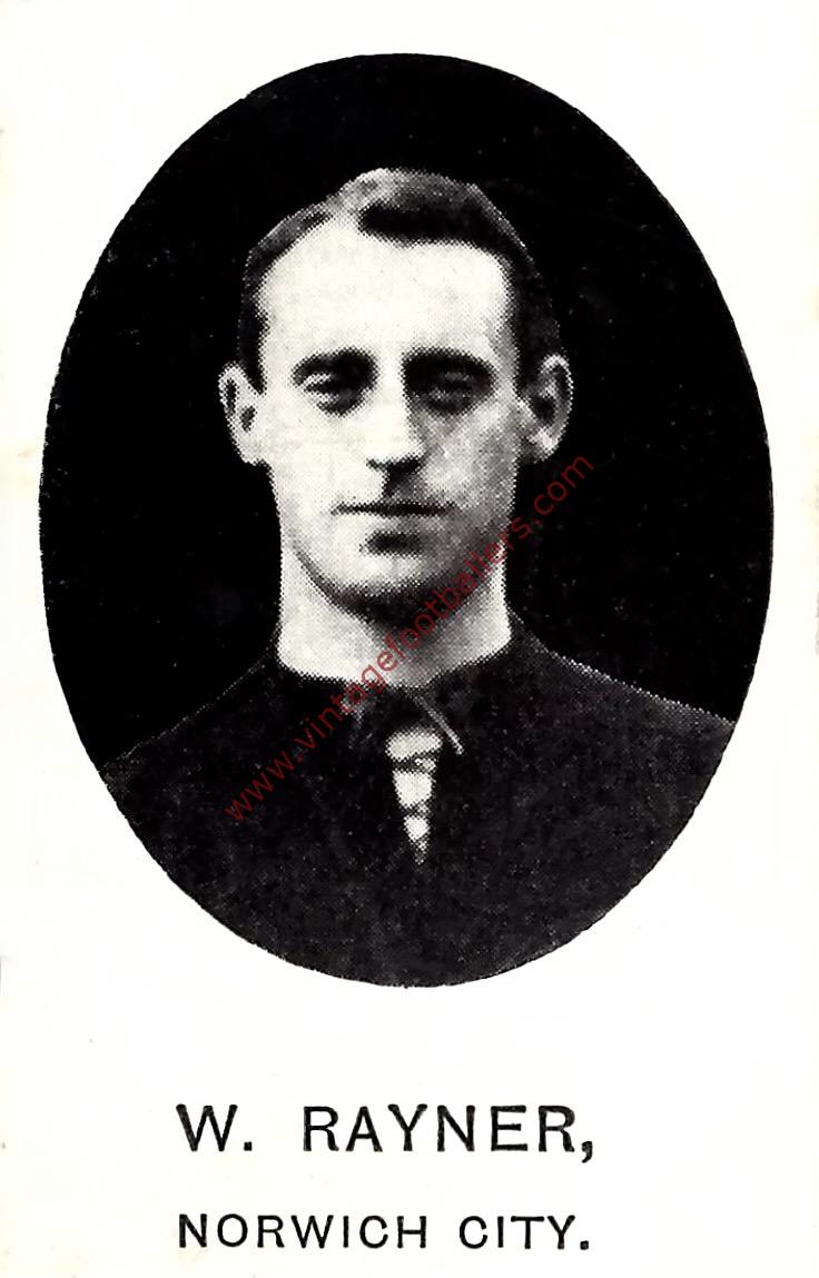 Wanstead, London born left back Walter Rayner’s playing career started at Leytonstone in 1904, and he played for South Weald in 1906 before he joined Southern League Norwich City in August 1907. He played 12 matches for Norwich in the Southern League and then joined Luton Town in May 1909, playing twice for The Hatters before leaving in April 1910. He joined non league Peterborough City in 1910 where he was appointed player-manager from August 1911 and then joined Croydon Common in August 1912, playing for them until 1914 but only making 3 appearances for them in the Southern League.