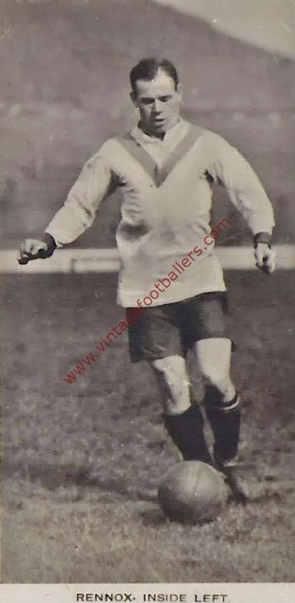 Shotts, Lanarkshire born inside left (who could play in all three central positions) Charlie Rennox played for Scottish League club Dykehead in 1919 before joining Wishaw YMCA in 1920. He joined Second Division Clapton Orient in the close season of 1921 making his Football League debut against Bury that August, scoring 11 goals in his first season and having four seasons in East London scoring 25 goals in 105 matches before joining Manchester United in March 1925.