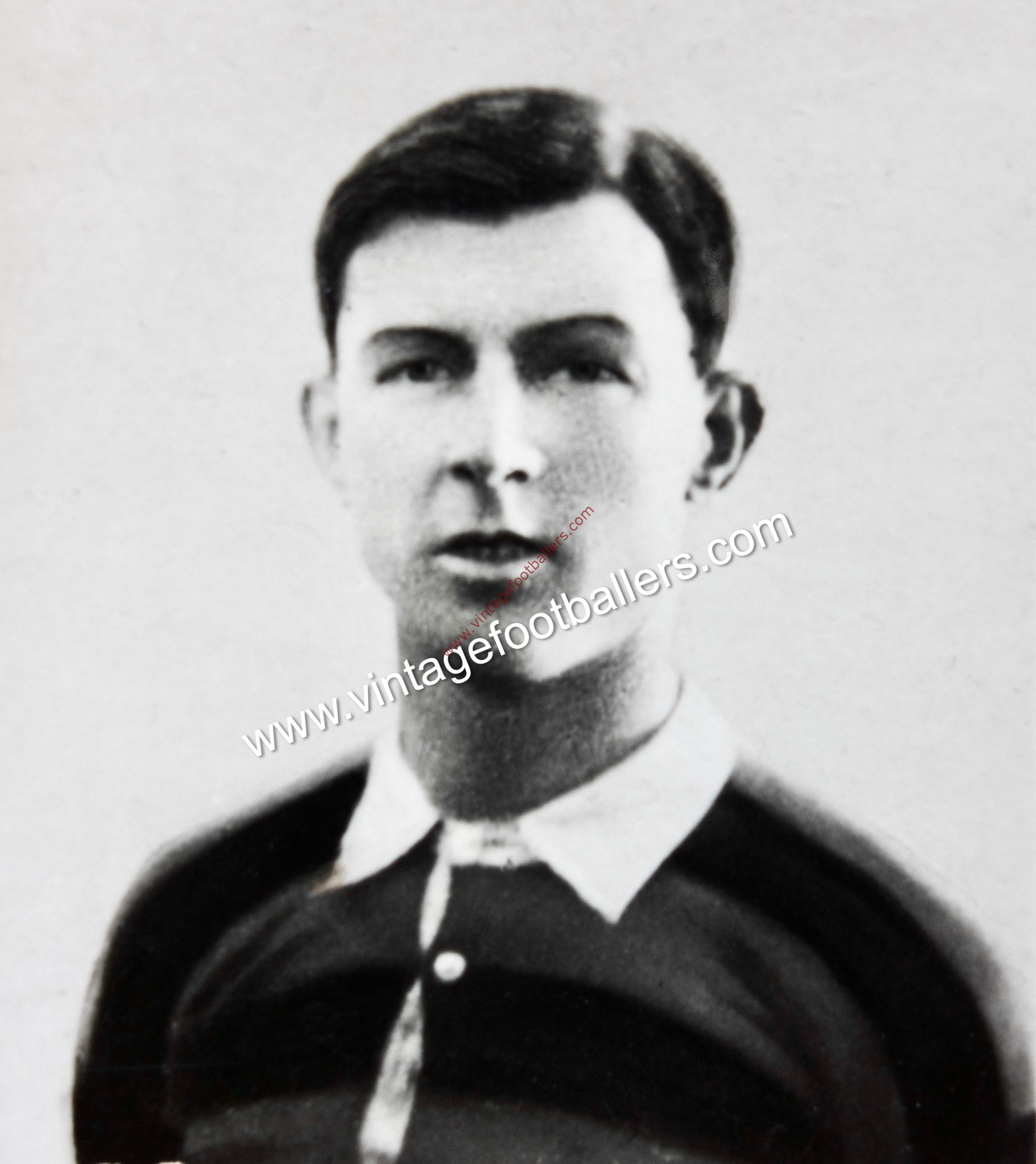 Stevenston, Ayrshire born left half James Scott began his football career with Ardrossan Winton Rovers, and played for Ardeer Thistle in 1909, from where he was signed by First Division club Liverpool in 1910, making his Football League debut at Bradford City in April 1912, making 4 appearances for The Reds before the end of the season. He made the starting line-up on the opening day of the following season and played in six of the first nine matches before losing his place to Ernest Peake. Although he never played for The Reds’ first eleven again, he remained on their books throughout the First World War, when he made 2 further appearances for Liverpool in their 1915-16 campaign.