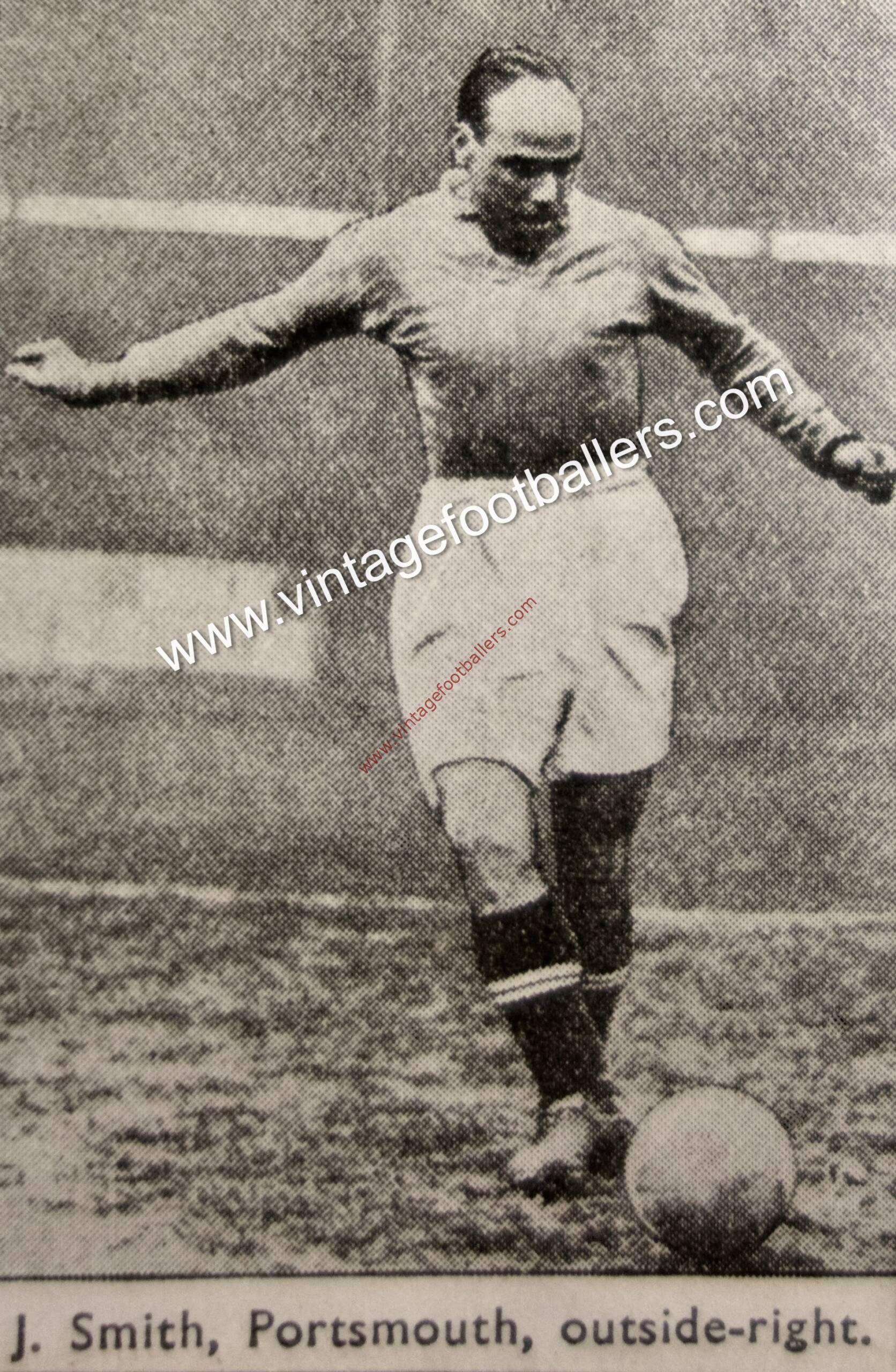 Smith was signed by First Division club Portsmouth on 31st December 1927 having scored 90 goals in 278 appearances for South Shields. In his first full season with Pompey they reached the 1929 FA Cup Final but were beaten 2-0 by Blackburn Rovers at Wembley. He was first called into the England squad in November 1930 but was a non playing reserve against Wales. His first cap came in October 1931 at Windsor Park, Belfast, scoring in a 6-2 victory over Ireland. He then scored again a month later in a 3-1 victory over Wales at Anfield and scored twice a month thereafter in a 7-1 victory over Spain at Highbury, which proved his final England international. He also twice represented The Football League.
