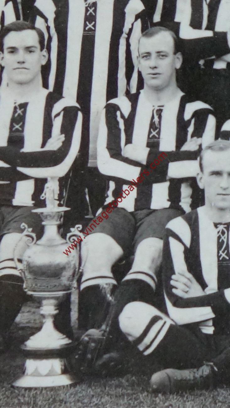 He made his Football League debut at the end of September against Sheffield Wednesday, scoring twice in a 5-1 victory at St James’ Park and scoring 10 League goals as Newcastle won the League Championship in his debut season. He stayed on Tyneside for another season and played in their surprise 3-1 defeat to Wolverhampton Wanderers in the 1908 FA Cup Final before joining Oldham Athletic in a joint deal with Bill Appleyard in June 1908 after 14 goals in 60 appearances for The Magpies.
