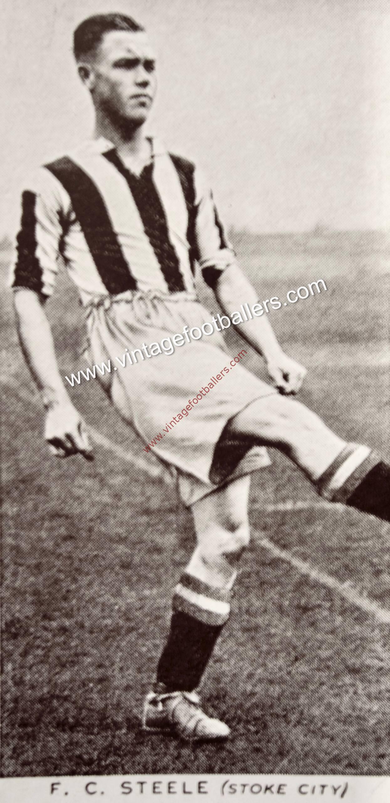 He returned to the Potteries in 1945-46, scoring 49 goals in 43 games during the course of the season. Competitive football resumed for the 1946-47 season, and Steele scored 31 goals in 43 games, bagging hat-tricks against Middlesbrough, Sheffield United, Grimsby Town, and Burnley, as Stoke posted another fourth-place finish to equal the club record when seemingly well placed to win the League coming into the home straight. He was Stoke’s top scorer for a sixth successive season in 1947-48, though he hit just 12 goals in 23 appearances; his contribution as the campaign was limited as he spent four months on the sidelines with a broken leg. He hit 19 goals in 42 games in 1948-49, though Frank Bowyer had by then taken up the mantle as Stoke’s main goal getter. Steele left the club in 1949, due to persistent knee problems joining Mansfield Town for £1,000 as player-manager in June 1949. He scored 159 goals in 251 appearances and remains the second highest goalscorer in the club’s history, after John Ritchie. His total in all competitions is 220 goals in 384 appearances.