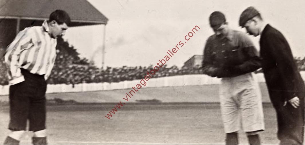 NB in the photograph taken before the FA Cup semi final against Sheffield United in May 1899, Storer tosses the coin with Sheffield United captain Ernerst Needham.