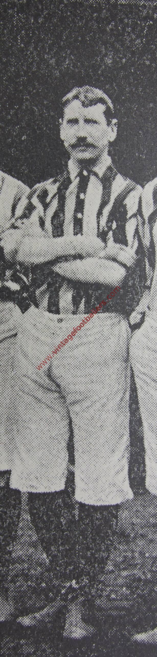 Belfast born left half Jack ‘Mit’ Taggart played football for Dundonald & Belmont County Schools and in the Irish League with Belfast Distillery from July 1889 before transferring to Middlesbrough in April 1892. Still just twenty years-old, his methodical defensive play earned the attentions of one of the giants of the English game, West Bromwich Albion who signed him for £150 in March 1893, making his Football League debut against Derby County on 1st April. Noted for his ability to hit a ball into space, rather than hoof it upfield as was more normal for the backs of the day, Taggart played in West Brom’s 1895 FA Cup Final defeat by Aston Villa.