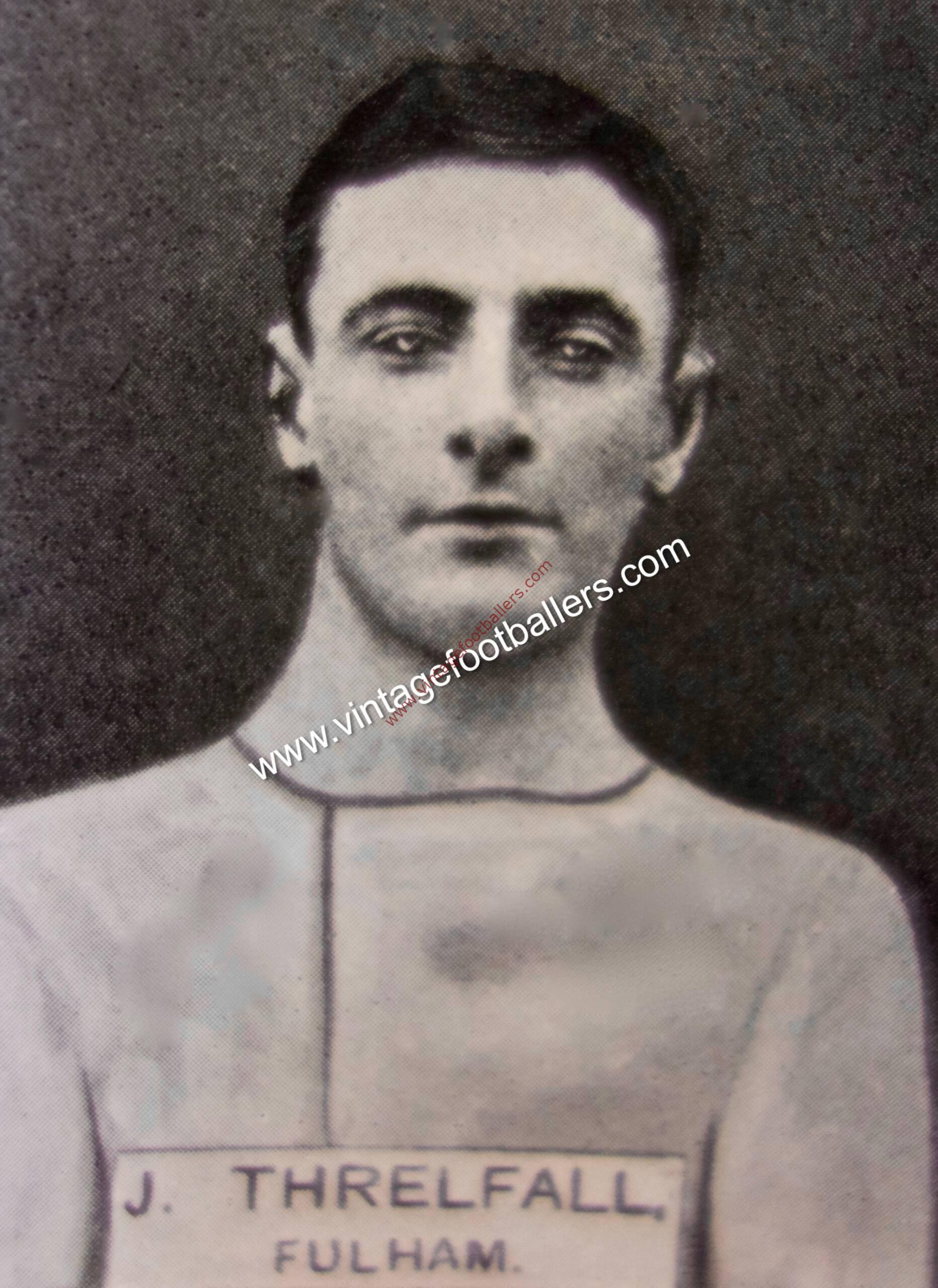 His son, Dickie Threlfall, a right back, played for Bolton Wanderers in wartime football and made 11 first team appearances post the Second World War, playing in 8 FA Cup ties during the first post war FA Cup competition in 1946, including playing in the FA Cup semi final where they lost 2-0 to two Chris Duffy goals for Charlton Athletic in front of nearly 71,000 spectators at Villa Park. Threlfall made 3 First Division appearances in Bolton’s first post war season in 1946-47, as well as 31 appearances for Halifax Town in 1947-48, and played non league football for Mossley and Wellington Town.