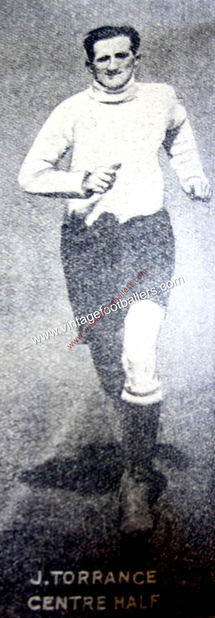 Coatbridge, Lanarkshire born centre half Jimmy Torrance began his football career with Kirkintilloch Rob Roy in 1908, playing for Glasgow Ashfield in 1909. Joining Second Division club Fulham as an inside forward from Glasgow Ashfield in 1910, he made his Football League debut at Bolton Wanderers that September and spent sixteen years at the club, albeit interrupted by the First World War, Torrance making a total of 357 League and FA Cup appearances for Fulham, scoring 35 goals, eight of which were from the penalty spot. In total, including all wartime matches, he scored 52 goals in 517 appearances for The Cottagers.