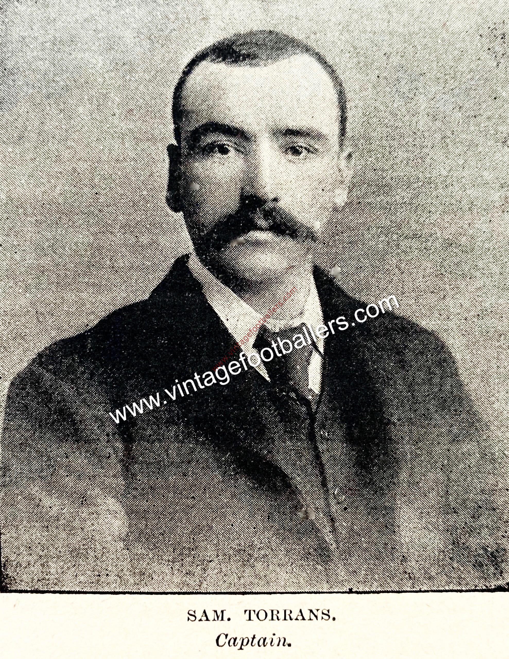 Belfast born inside left, left half and left back Sam Torrans was undoubtedly the star of the famous Torrans clan. Sam was the only one of the four brothers to play in each of Linfield’s first six Irish League titles and first seven Irish Cup wins between 1891 and 1902 respectively. A founding member of th club, first playing for them in 1886-87, he was originally a free scoring forward, scoring 18 times in Linfield’s first title winning season of 1890-91, including five in a 14-0 win over Oldpark. He ended the 1890-91 season with another strike in a 4-2 Irish Cup win over Ulster. He scored another Irish Cup Final goal a year later as the Black Watch Regiment were defeated 7-0 (brother Rab also scored) and although he failed to find the net in the 1893 5-1 Final win over Cliftonville, another brother, Tom, did.