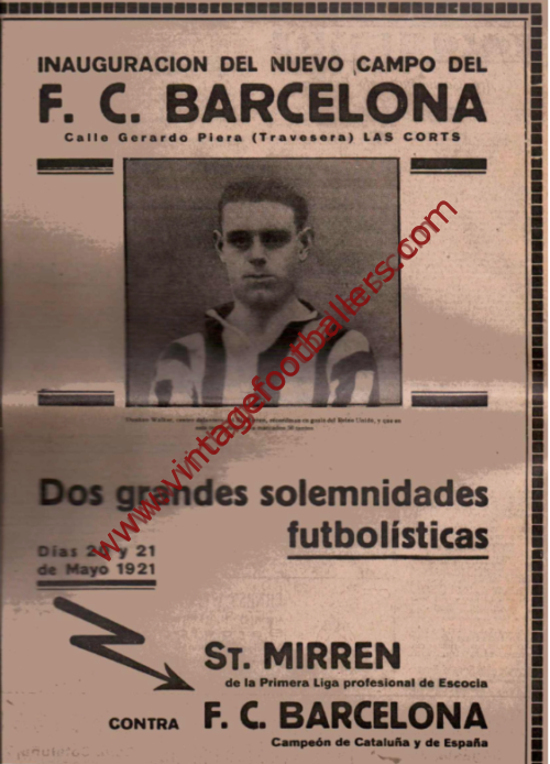 This is an image of Walker featured on advertising for the match against FC Barcelona to open their new 30,000 capacity Les Cortes ground in May 1922.