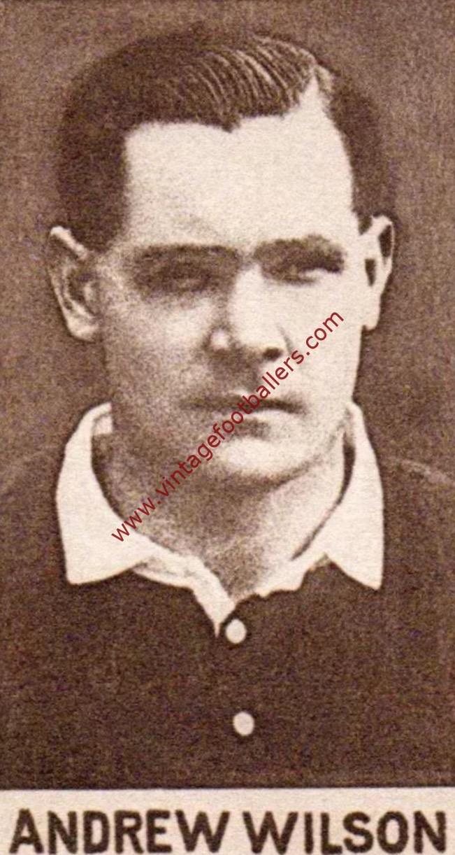 Newmains, Lanarkshire born inside forward Andy Wilson really was one of the biggest 2 or 3 star names in football in the early-mid 1920’s. Middlesbrough signed him from Cambuslang Rangers in 1914 and he made his Football League debut in January 1915 at West Bromwich Albion, playing only 8 games, scoring 5 goals including a brace on his home debut against Everton, before hostilities intervened and peacetime football was suspended. He returned to Scotland in between his First World War service in the trenches (he later wore a glove to mask his hand which had been shattered by a bullet to hide the disfiguration), playing for Hamilton Academical in 1916, Hearts, where he scored 32 goals in 33 appearances between January 1918 and May 1919, and for Dunfermline, but when Dunfermline joined the Scottish Football League in 1921, Wilson returned to Middlesbrough who still held his registration from before the War. In his first season back at ‘Boro he scored 32 League goals in 35 games including hat-tricks against West Bromwich Albion in a 3-2 victory in September 1921 and in a 4-1 win over Manchester City in February 1922.