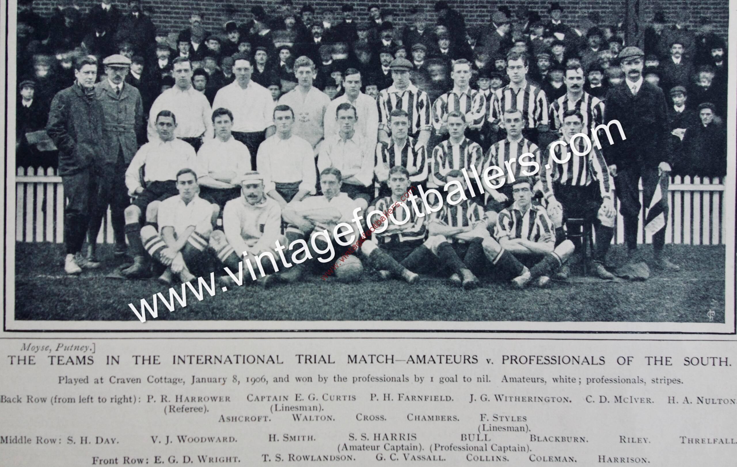 NB This photograph was taken on 8th January 1906 before an Amateurs v Professionals England trial match played at Craven Cottage, Fulham, which the Professionals XI won 1-0.